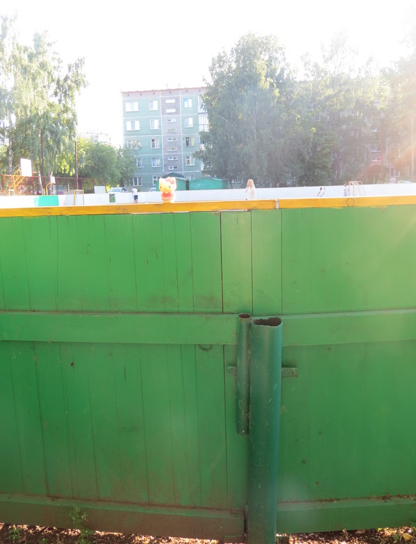- А сразу же за овощехранилищем находится хоккейная коробка. Китти на её заборе... На заднем плане всё ещё Комсомольская-21.