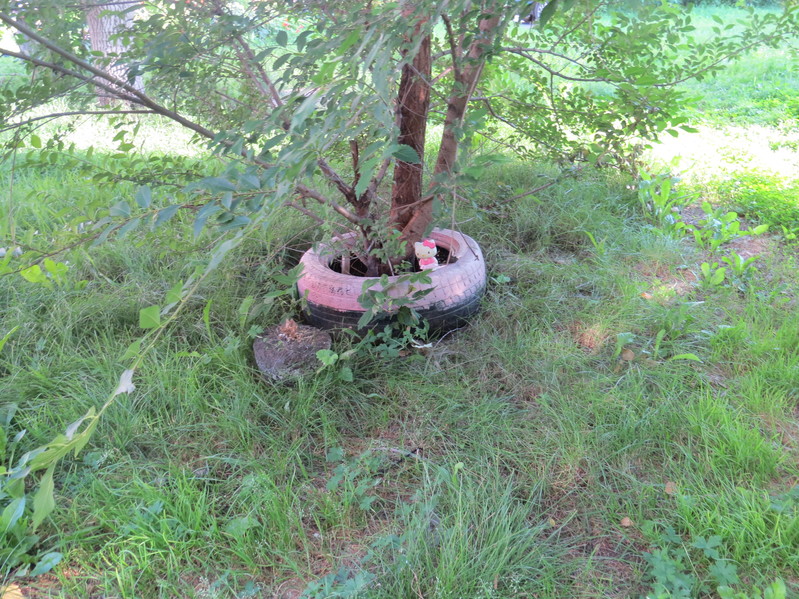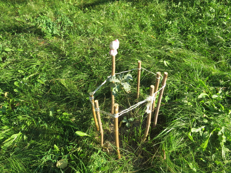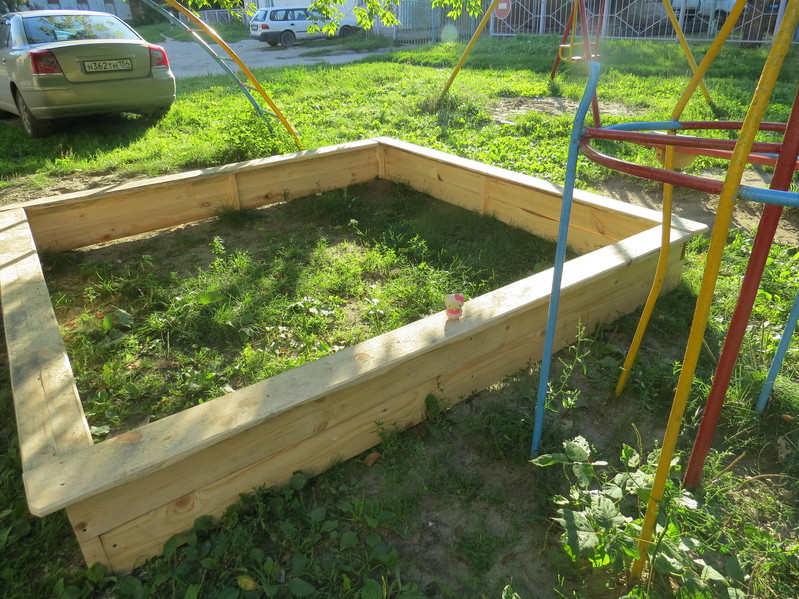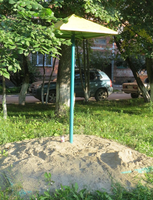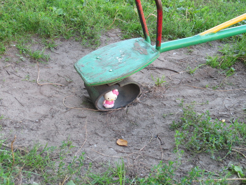 - А ещё Китти обнаружила здесь новую песочницу. Её ещё не вкопали и не наполнили песком... (И вообще позднее её установят чуть в другом месте, честно говоря...)