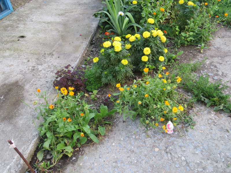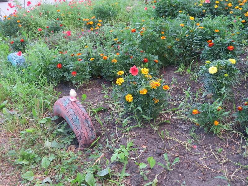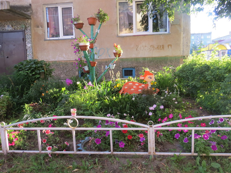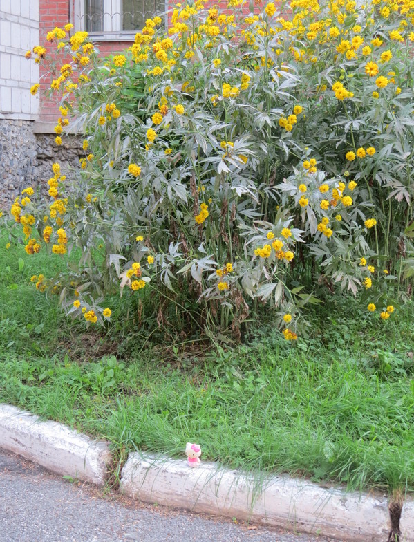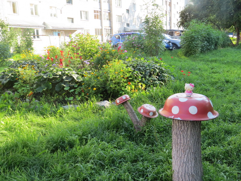 - Китти рассматривает цветы на клумбе рядом с Вокзальной-20.