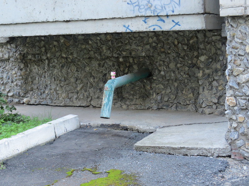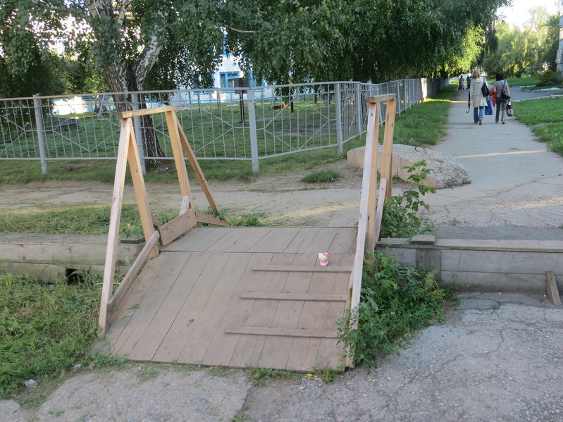 - Вот таким препятствием заканчивается наша "первая прямая дорожка". Трубы на поверхности земли появились в этом месте несколько лет назад (примерно тогда же, когда родилась Лизавета). Позднее их закрыли в деревянный короб и поставили мостик через короб.