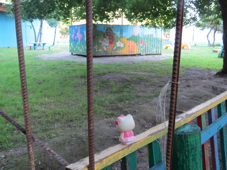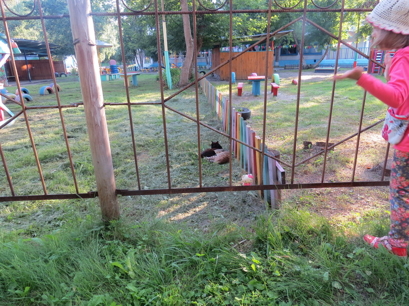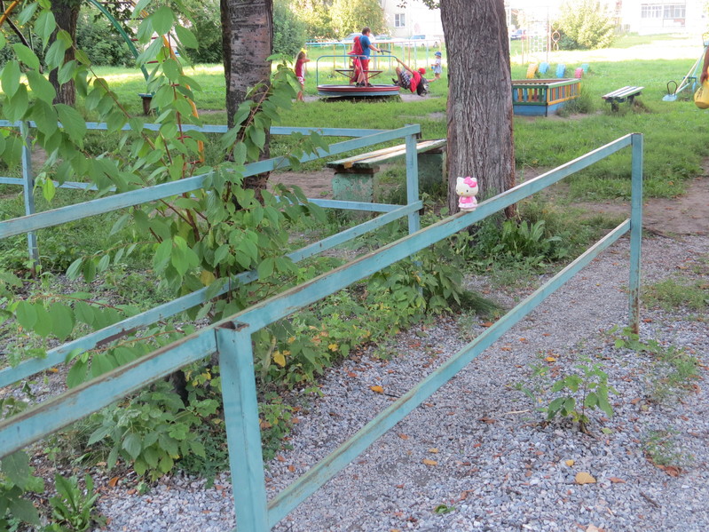 - Китти демонстрирует через забор площадку группы "Полянка", в которую ходит Лизавета.