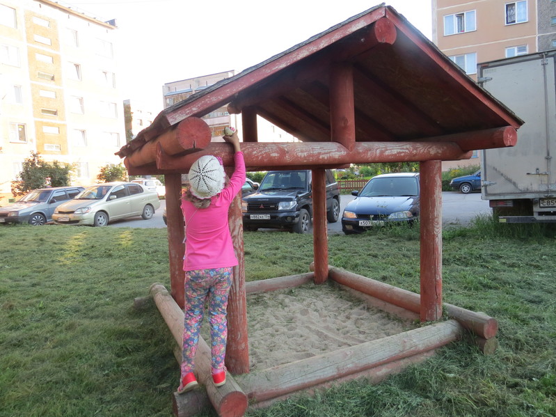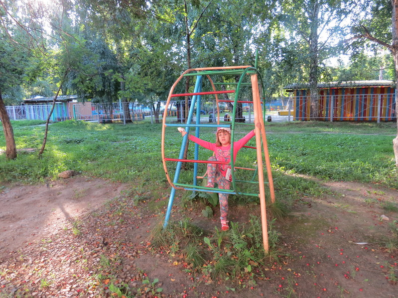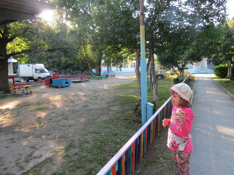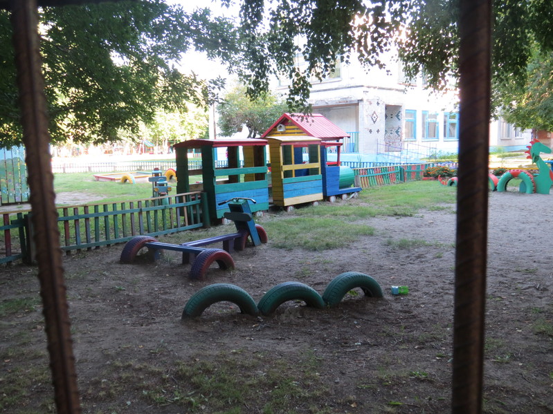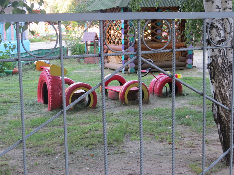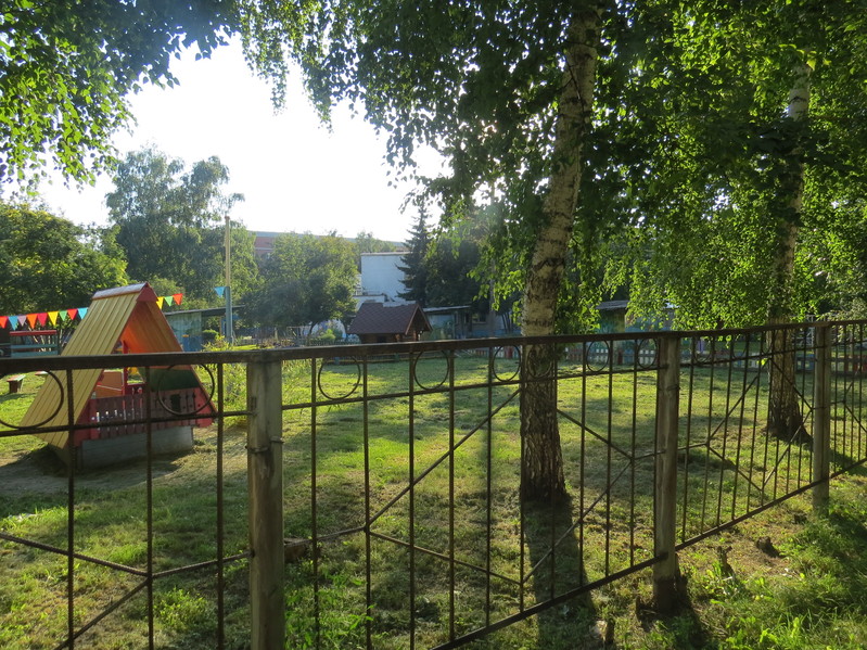 - Ещё один взгляд через забор детского садика. Это площадка той группы ("Сказка"), в которую Лизавета ходила первые полгода в садике.