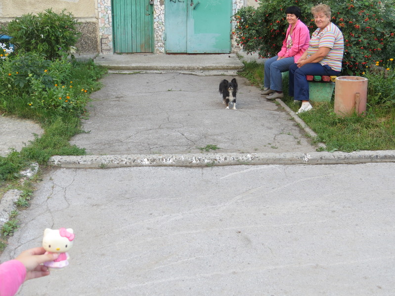- Здесь встретилась собачка. Китти с ней сфотографировалась -- хозяйка собачки (одна из старушек на фото) разрешила...