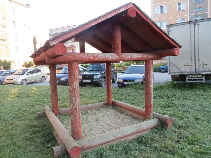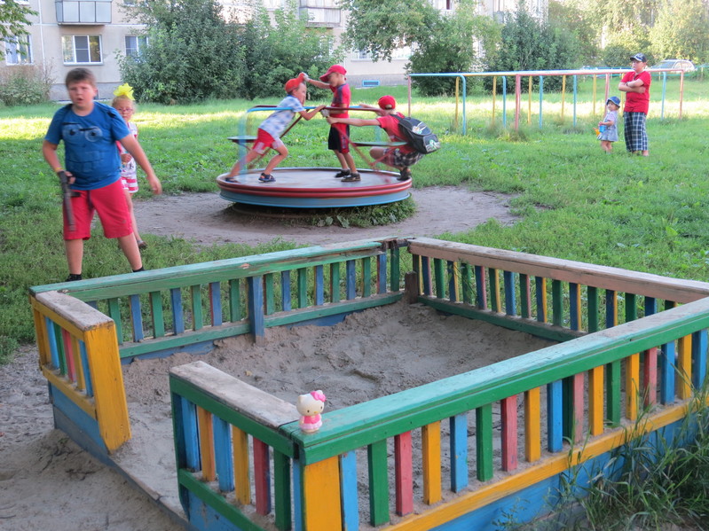 - Китти на песочнице. Здесь на заднем плане Вокзальная-18 (дом стоящий перпендикулярно Вокзальной-20 и Вокзальной-24).