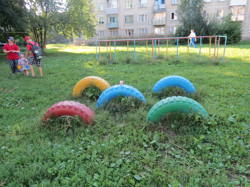 - Идём вдоль тыльной стороны дома Вокзальной-14, смотрим налево -- и снова видим площадки детского садика.