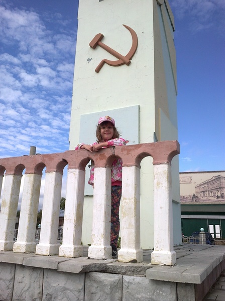- Лизавета с мамой на главной площади города Куйбышева. Хоть цифирки уже облетают с памятника, но важно помнить, что город был основан в 1722 году. (До трёхсотлетия тут тоже рукой подать уже!)