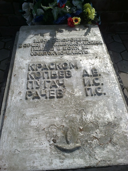 - У подножия памятника героям революции вот такая плита. Можно обратить внимание на первое имя: "Краском". Настоящее имя его осталось неизвестным. Но именно этим именем названа одна из главных улиц города.