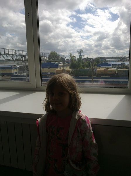 - А это уже и вовсе Барабинск. Объявили наш поезд, идём по пешеходному переходу из барабинского вокзала к путям. Недалеко от вокзала, за железнодорожными путями -- новый храм. Купола здорово светились на солнышке, Лизавета захотела с ними сфотографироваться. Хотя телефонный аппарат сдвинул акценты иначе...