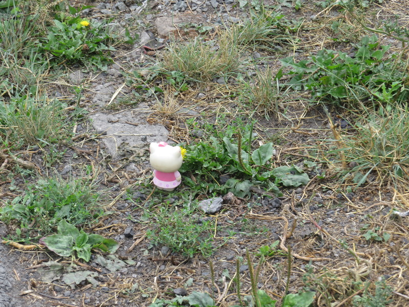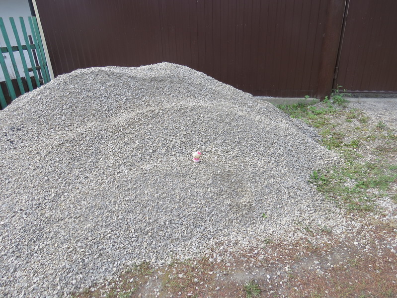 - Китти на куче гравия...