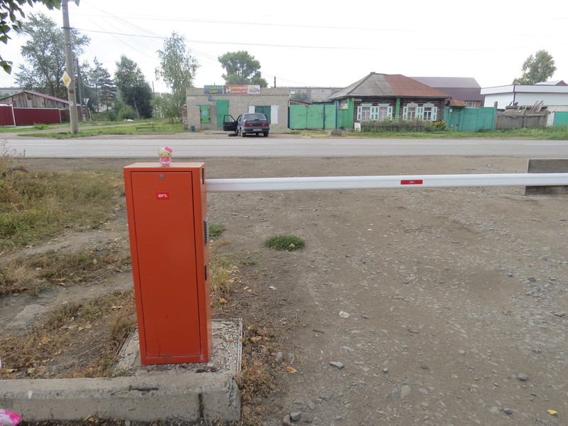 - Теперь Китти сидит на столбе шлагбаума, который закрывает проезд к магазину по адресу Володарского-60... На противоположной стороне улицы, за спиной Китти -- шиномонтажная мастерская, а за ней виден дом 14 квартала 1...