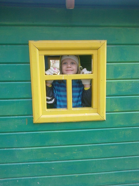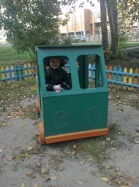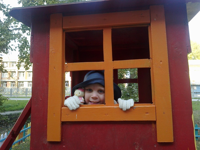 - 3 октября, там же. Игровая площадка в том дворе оказалась очень интересной. Лизавета с Китти изучают домик...