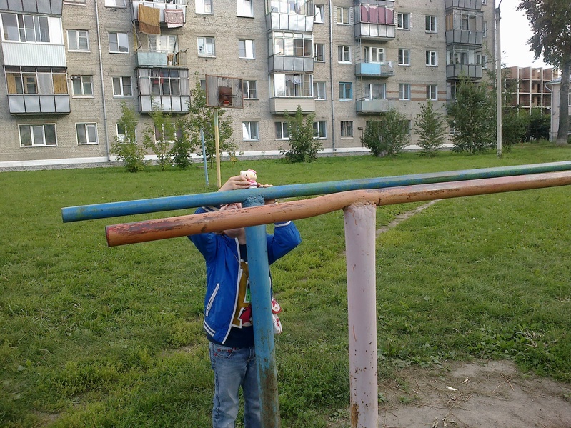 - 20 августа Китти с Лизаветой нашли очень кривой турник во дворе дома Ленина-16...
