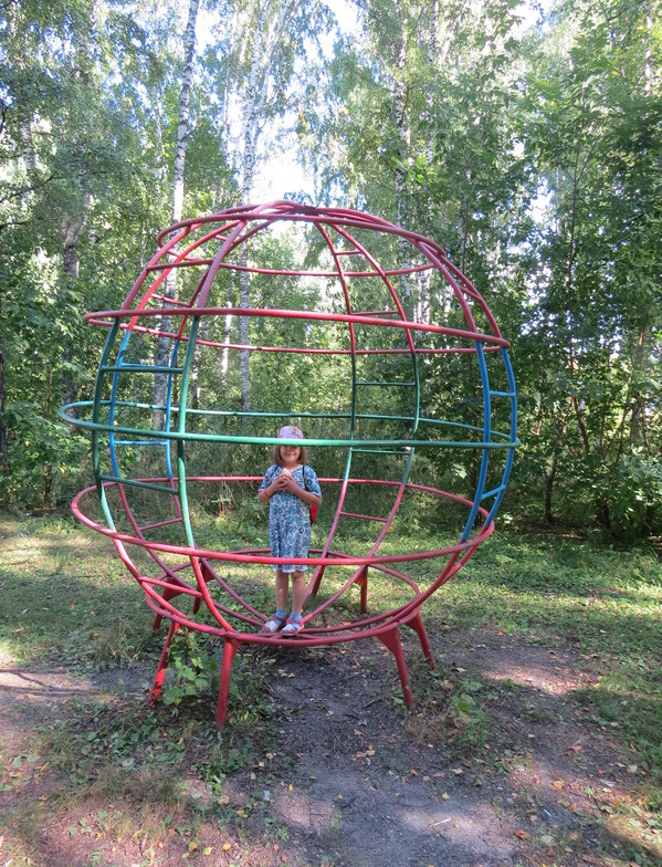 - 13 августа. Китти с Лизаветой нашли интересную лазалку в виде земного шара во дворе Арбузова-8.