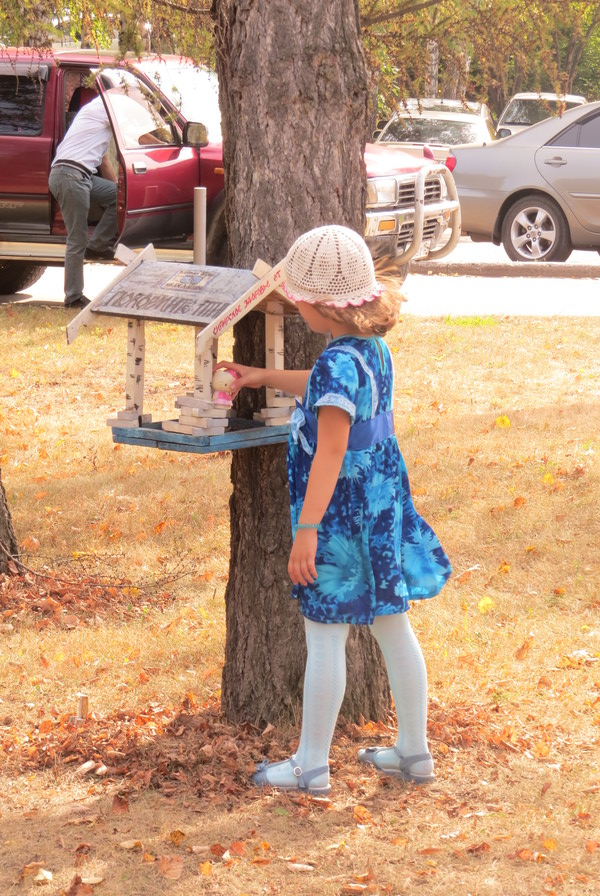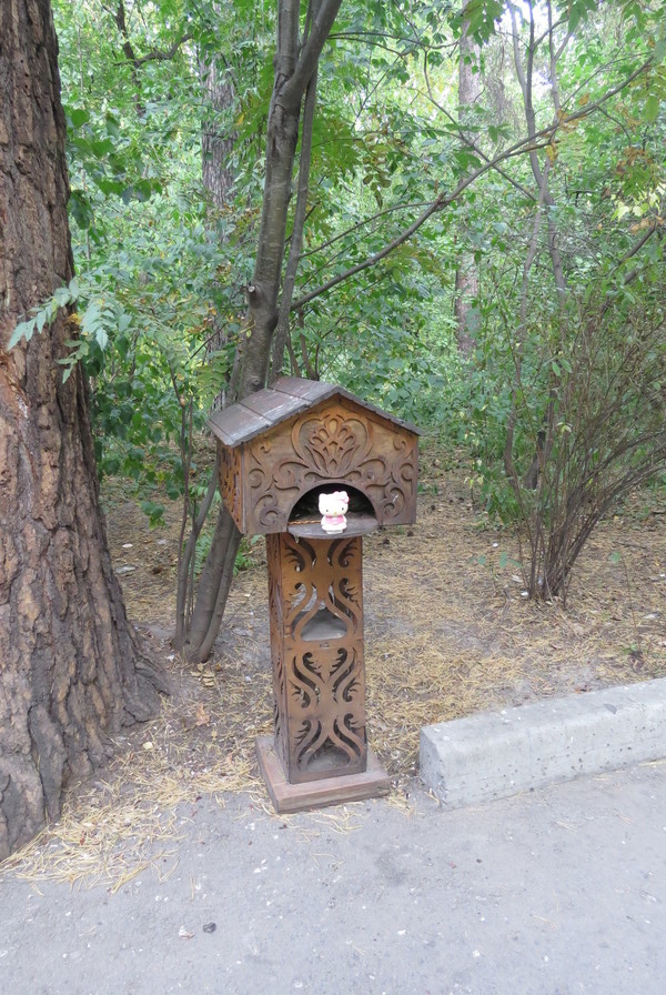 - 8 сентября Китти с Лизаветой приехали на свадьбу Лизиного брата Жени в ЗАГС Советского района г. Новосибирска (пр. Лаврентьева-14). И Китти тут же нашла рядом с ЗАГСом интересную вещь: кормушку для птиц...