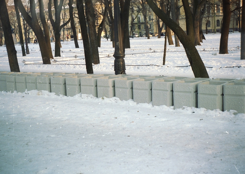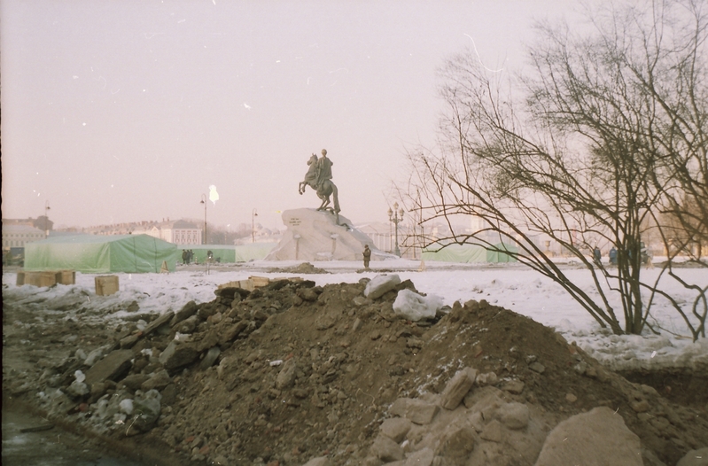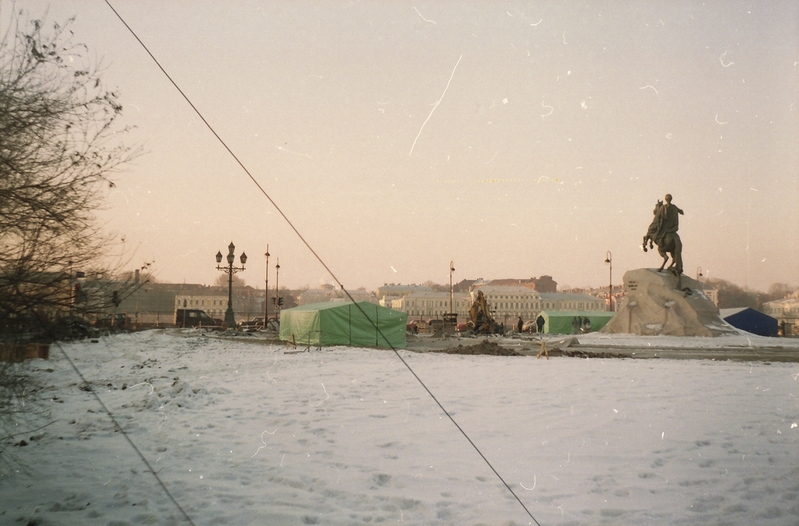 можно привести такие процессы: "Медный всадник". Фотография сделана, просунув объектив фотоаппарата через решетку. Около памятника видны эти самые палатки, которые натыканы на каждом шагу...