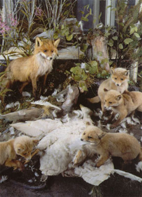 "Русский музей" Если по эрмитажу я была согласна бежать бегом, то насчет Русского музея была решительно против такого посещения. К сожалению, именно то, что мне больше всего хотелось посмотреть, осталось для нас недоступно -- древнее искусство вплоть до середины XVIII века находилось на реэкспозиции. Поэтому полотна Венецианова, Левицкого, Рокотова и т.п. остались нам неведомы... Зато как старых знакомых встретила я картины Врубеля, Кустодиева, Куинджи, Репина, Сурикова... И других... Очень живо вспомнились мне наши учителя из Художки, как будто только что Юрий Евгеньевич Скультецкий рассказывал о Кустодиеве, Николай Григорьевич Чумакин -- о Петрове-Водкине... (Собственно, надо признать, что не менее живо вспомнились в Эрмитаже Федор Леонидович Наумов в зале Рембранта и Валентина Леонидовна Коновалова среди античных статуй...) Алешке особо понравились работы Куинджи... "Зоологический музей" В предпоследний день пребывания в Санкт-Петербурге мы отправились пешком на Васильевский остров. Собственно, мы собирались в Кунсткамеру. Но по дороге нам попался Зоологический музей. И мы очень даже не пожалели, что так получилось... Зоологический музей понравился мне даже больше, чем Русский. :) Бесконечная анфилада залов, плотно наполненная экспонатами -- чучелами, плакатами и витринами, просто завораживала... Вокруг сновало большое количество восторженных детей. Я их очень хорошо понимаю... :) Открытка. Одна из витрин в Зоологическом музее