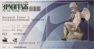 Потому что, во-первых, основные постройки (собственно, сама крепость, ворота на входе и т.п.) были полностью упакованы в строительные леса. А, во-вторых, на территории Петропавловской крепости оказалось несколько музеев совершенно разной направленности, на посещение которых требовался только один билет... Так что мы для начала побывали в музее космонавтики, где полюбовались на различные виды двигателей и скафандров. А потом посетили временную выставку "История Петербурга в изобразительном искусстве" (за точность формулировки не ручаюсь, впрочем...) Особенно интересно было различать на акварелях и рисунках XVIII-XIX веков здания и мосты, мимо которых проходили всего лишь вчера. Впрочем, выглядели они совершенно так же. Разве что в реальной жизни они выглядели несколько более обветшалыми и грязными. Особенно еще можно отметить небольшую деталь из того же музея. В дальней комнате была представлена комната с обстановкой конца XVIII века. Все бы ничего, но кроме различных вещей там были еще и детские игрушки того же времени... Очень забавно было увидеть головоломку -- совершенно конкретный паззл, и кукольный домик... Ровно такие же, только из дешевого пластика (а не из дерева) выставляются в различных рекламах, как "домики Барби" и утверждается, как хорошо это кто-то придумал так недавно... (Еще там была железная дорога, от которой, как сказал Алешка, любой мальчик бы пищал и сейчас...) Почему-то стало приятно, что и пару веков назад дети играли во вполне интересные игрушки... :) Еще мы краем глаза заглянули в саму крепость, где находятся усыпальницы императоров Российских и музей монетного двора. (Около монет стоял мужик, который крутил ручку непонятного станка и на всех огрызался...) На разглядывание монет Алешку уже не хватило, и мы отправились обратно... "Эрмитаж" Учитывая, что жили мы за углом от Эрмитажа, туда-то мы и отправились первым делом, когда Алешка решил, что уже может выдержать поход в музей. Билет в Эрмитаж